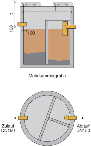 [[Datei:Mehrkammergrube.jpg|mini|Kleinkläranlage (Mehrkammergrube) aus Beton]] | |||