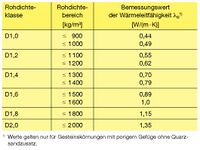 Tabelle: Beispiele für Rohdichten und Wärmeleitfähigkeiten ausgewählter Baustoffe