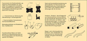 Verschieden geformte Kleinteile aus unterschiedlichem Material zum Anbringen an der Bewehrung
