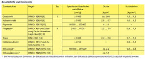Im Gegensatz zu den Betonzusatzmitteln ist die Zugabemenge i. A. so groß, dass sie bei der Stoffraumrechnung berücksichtigt werden muss.
