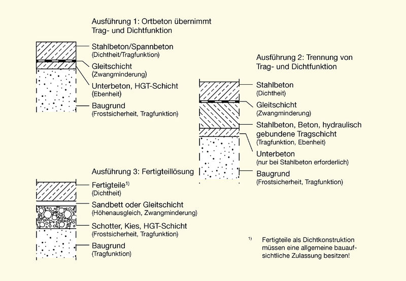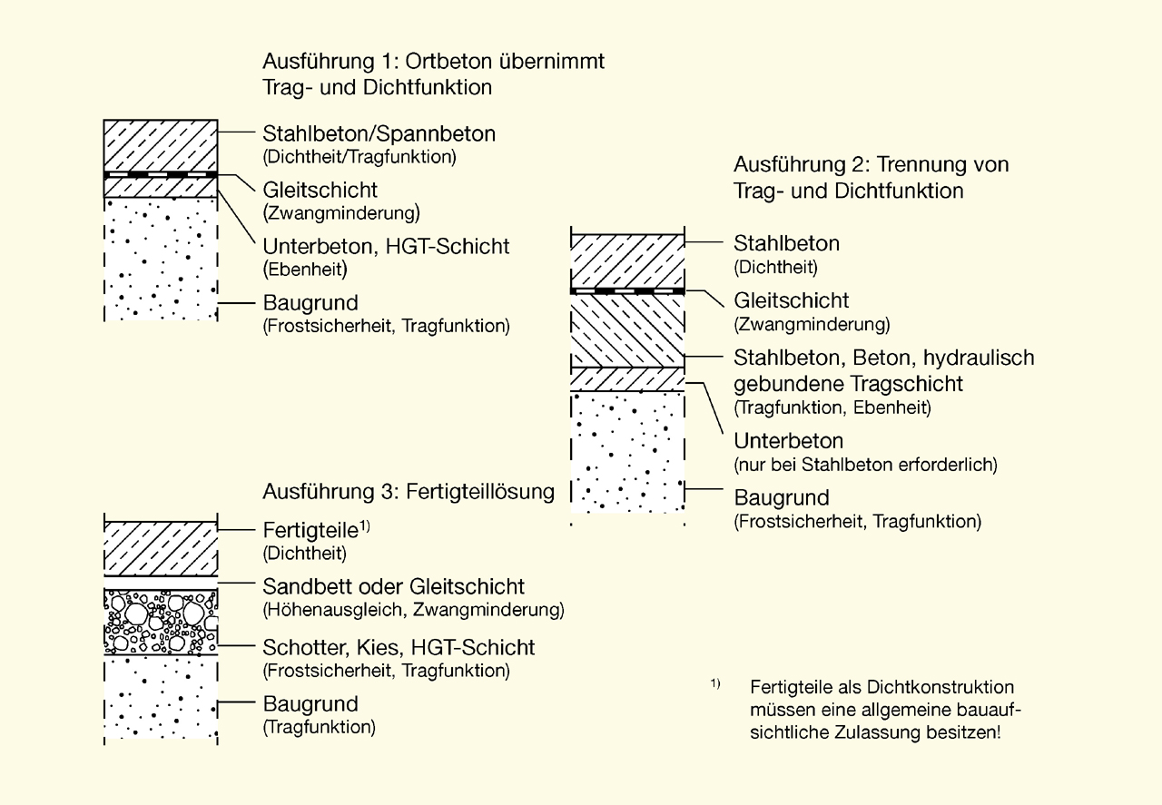 Ausführungsbeispiele für den Aufbau von Bodenplatten mit Dichtfunktion