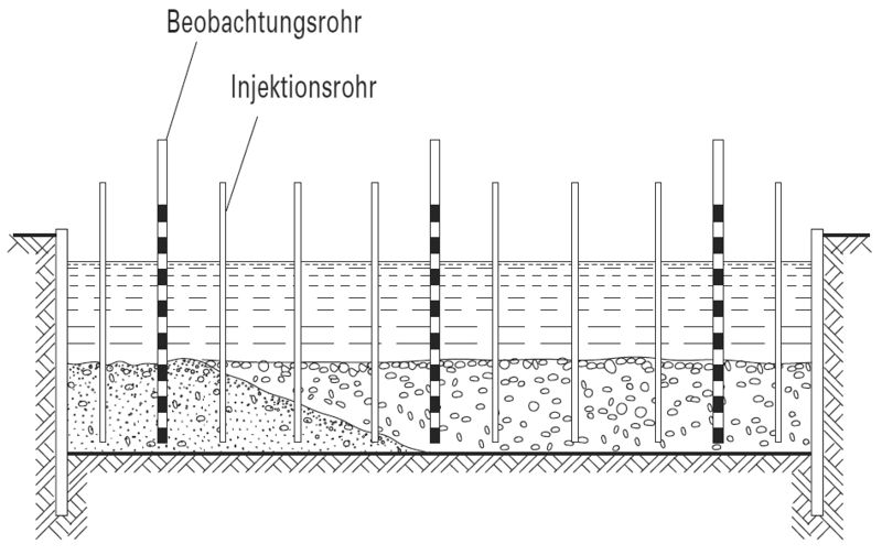 Unterwasserinjektion eines Grobkorngerüsts im Colcrete-Verfahren Aus: Zement-Merkblatt B 12 "Unterwasserbeton" Ausgabe 1.1999