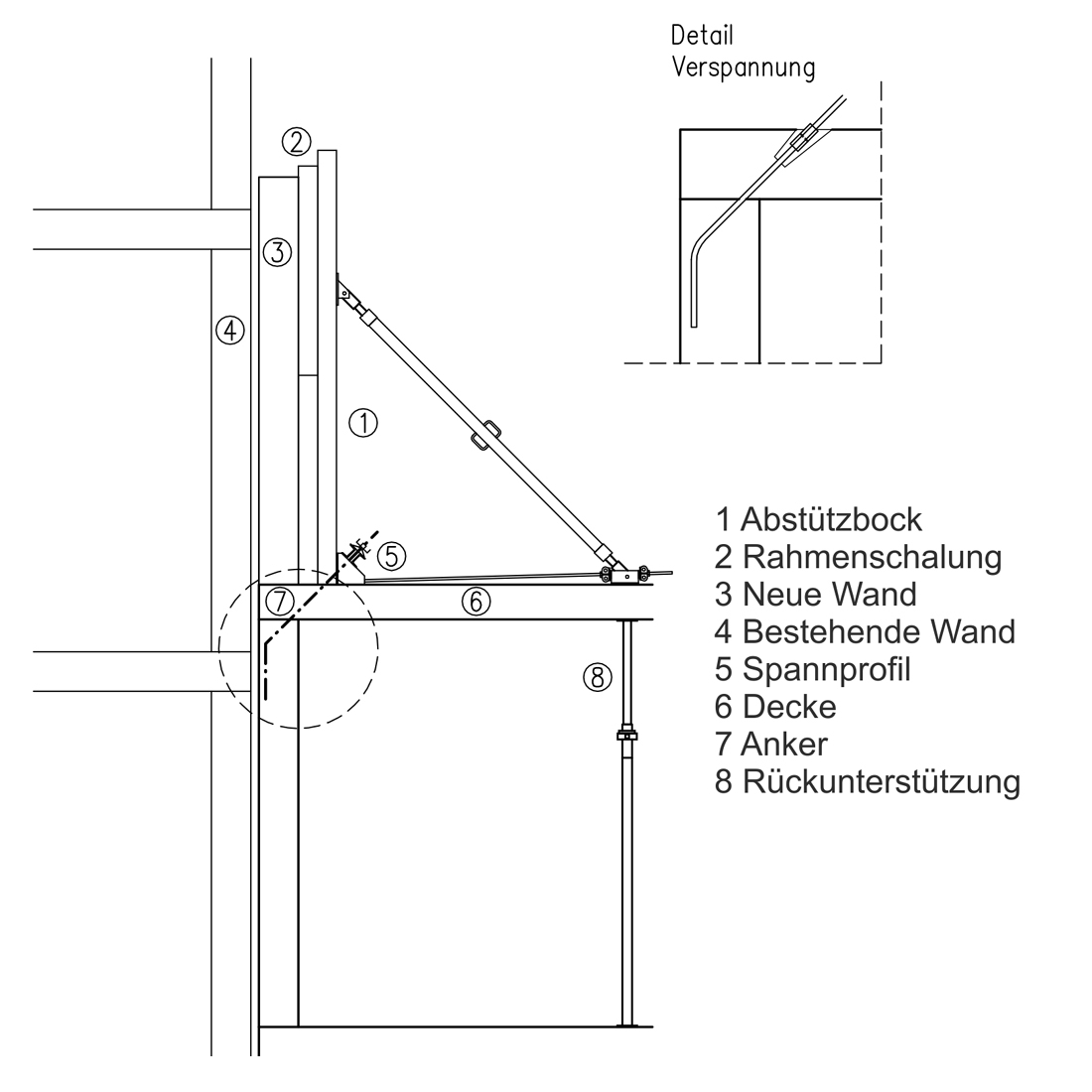 Einsatzbeispiel eines Abstützbocks System NOE im Geschossbau; Schnitt