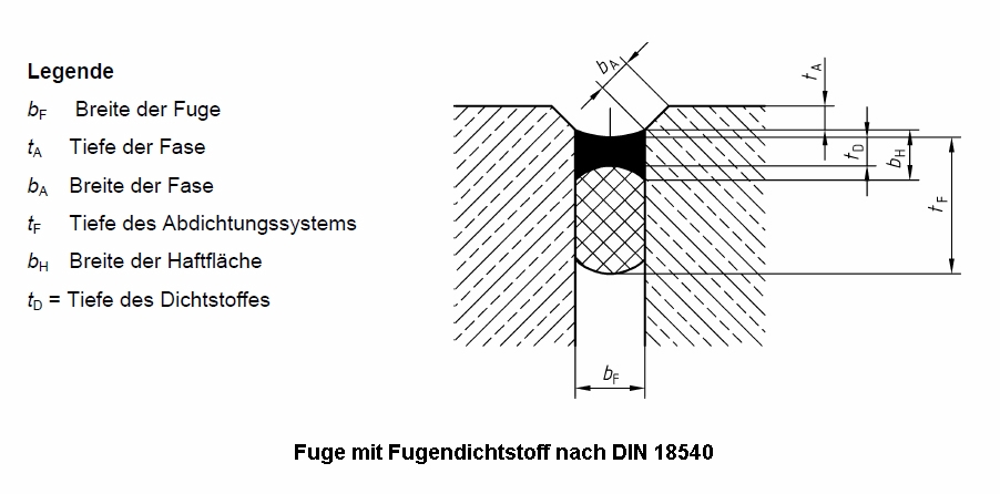 Fugenabdichtung mit Fugendichtstoff gemäß DIN 18540