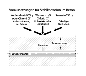 Voraussetzungen für Stahlkorrosion im Beton