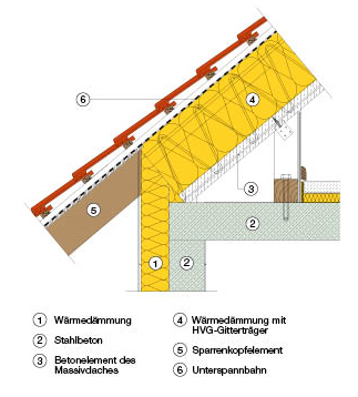 Geneigtes Massivdach mit Betonfertigteilelement