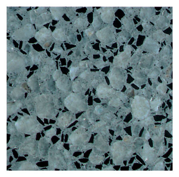 Polierte Betonoberfläche mit heller und dunkler Gesteinskörnung und Weißzement