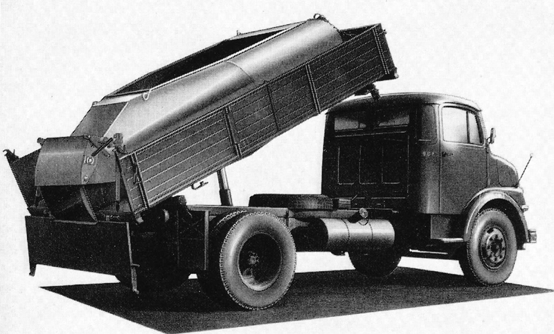 Betontransportbehälter mit 3 m³ Inhalt auf einem LKW montiert (Kaiser) um 1960.