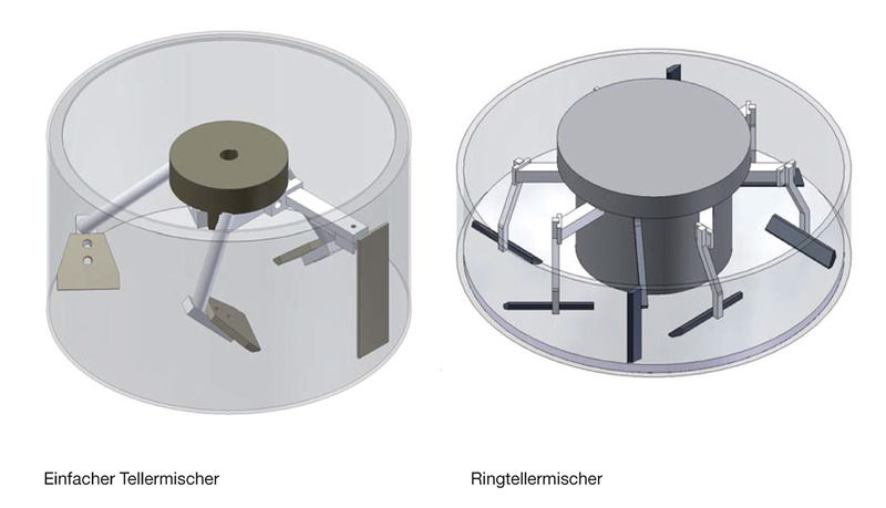 Einfacher Tellermischer (links) und Ringtellermischer (rechts)