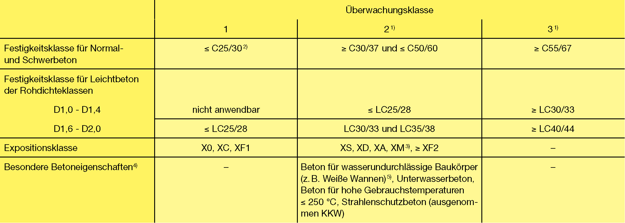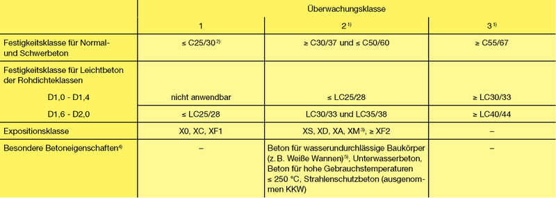 Überwachungsklassen für Beton