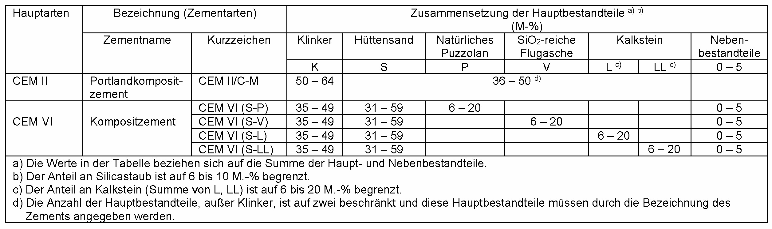 Zementarten nach DIN EN 197-5:2021-07