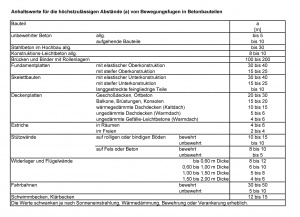 Anhaltswerte für die höchstzulässigen Abstände (a) von Bewegungsfugen in Betonbauteilen