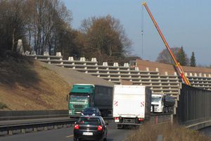 Steilwall mit aufgesetzter Lärmschutzwand zum Schutz einer Grundschule und eines Wohngebiets an der BAB A1 in Wuppertal