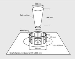 Die Konsistenzprüfung am Selbstverdichtenden Beton wird oft mit dem Setzfließmaß entsprechend Prüfvorschrift "DAfStb-Richtlinie Selbstverdichtender Beton:2003-11, Anhang M" (abweichendes verfahren: DIN EN 12350-8:2010-12 "Prüfung von Frischbeton – Teil 8: Selbstverdichtender Beton – Setzfließversuch") durchgeführt. Das Setzfließmaß selbstverdichtender Betone wird sowohl mit als auch ohne Blockierring bestimmt. Der Frischbeton wird ohne zusätzliche Verdichtung in eine umgedrehte Kegelstumpfform gefüllt. Nach dem Hochziehen des Kegelstumpfs beginnt der Beton unter der Wirkung der Schwerkraft zu fließen. Der mittlere Durchmesser des sich ausbreitenden Betons nach Beendigung des Fließvorgangs und die Zeit bis zum Erreichen eines vorgegebenen Zieldurchmessers sind Maße für die Fließfähigkeit des Betons.
