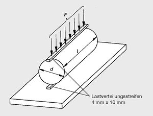 Bei der Prüfung der Spaltzugfestigkeit nach DIN EN 12390-6 wird ein Probezylinder zwischen zwei gegenüberliegenden Mantellinien mit vorgegebener Belastungsgeschwindigkeit in einer Druckprüfmaschine bis zum Bruch belastet. Dabei treten quer zur Belastungsebene überall gleich große Zugspannungen auf. Die für die Prüfung der Spaltzugfestigkeit verwendeten Probekörper müssen Zylinder gemäß DIN EN 12390-1 sein, wobei jedoch ein Verhältnis von Länge zu Durchmesser von 1 zulässig ist.