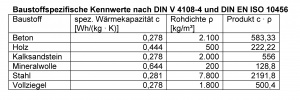 Baustoffspezifische Kennwerte nach DIN V 4108-4 und DIN EN ISO 10456