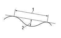 Die Winkelabweichung einer Bauteilkante wird ermittelt als Stichmaß (3) der Verbindung zwischen Anfangs- und Endpunkt der Bauteilkante (5) zu einer Bezugslinie im Nennwinkel (4). Die Grenzwerte der Winkelabweichung werden in DIN 18202 "Toleranzen im Hochbau - Bauwerke" als zulässiges Stichmaß bei einem bestimmten Nennmaß angegeben.