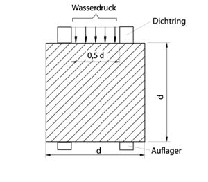 Die Wassereindringtiefe wird bei der Prüfung der Wasserundurchlässigkeit von Festbeton gemäß DIN EN 12390-8 an Probekörpern ermittelt. Der Probekörper wird dabei über eine bestimmte Zeit einem definierten Wasserdruck ausgesetzt und nach dem Versuch aufgespalten. Die Wassereindringtiefe wird in mm gemessen und ist ein Maß für den Widerstand des Festbetons gegen Eindringen von drückendem Wasser. Als Wassereindringtiefe gilt der Mittelwert der größten Eindringtiefe von drei Probekörpern.